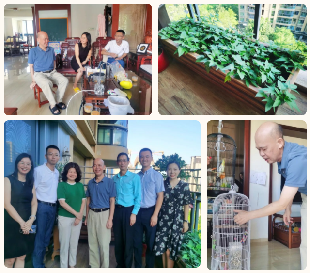集團原副董事長羅映南家中,兩只鸚鵡吸引了大家注意,原來羅董在家逗鳥、種菜,在都市一隅醉夢“田園光景”,好不快活。據(jù)羅董太太介紹,本學期進入華師希平雙語學校就讀的大孫女,已化身學校小小宣傳員,在小區(qū)內(nèi)逢人便介紹希平學校老師們有趣的教學方法,分享她在校園感受到的快樂。言談中,皆是兒孫繞膝盡享天倫的福氣。